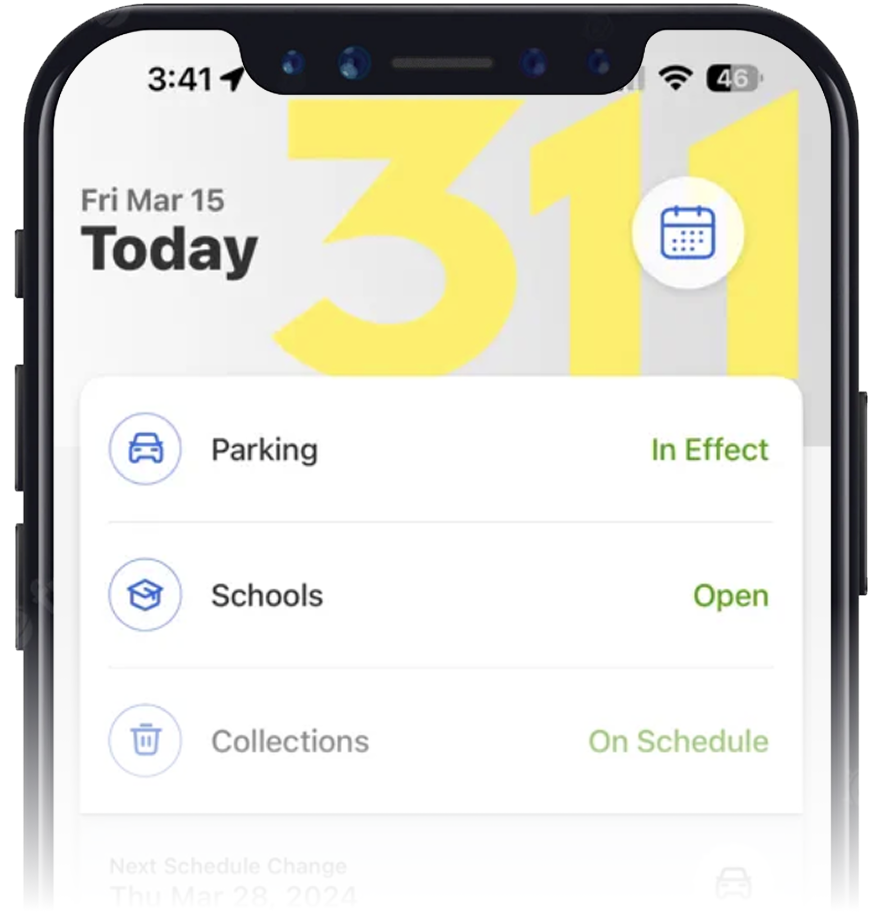 Get the latest status of alternate side parking, trash collection, and schools. Status is also available on the 311 app.